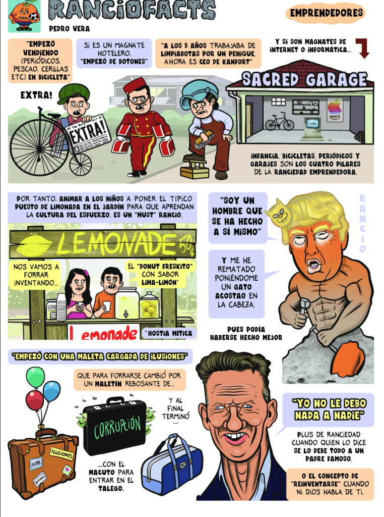 Ens venen constantment que tots podem ser emprenedors (entrepeuners, que es veu que tot queda més “cool” en anglès), però no és així. Tots les persones que han obert un negoci que he conegut, ho han fet gràcies a l’herència o l’ajuda dels pares. No estic jutjant, ni dient que sigui una cosa mal feta, segurament jo faria el mateix si tingués un negoci i/o el meu fill en volgués obrir un, però que no ens prenguin el pèl. Dels que treballant molt i molt o a partir d’una “gran idea” han aconseguit obrir un negoci, existeixen, però son molts menys.