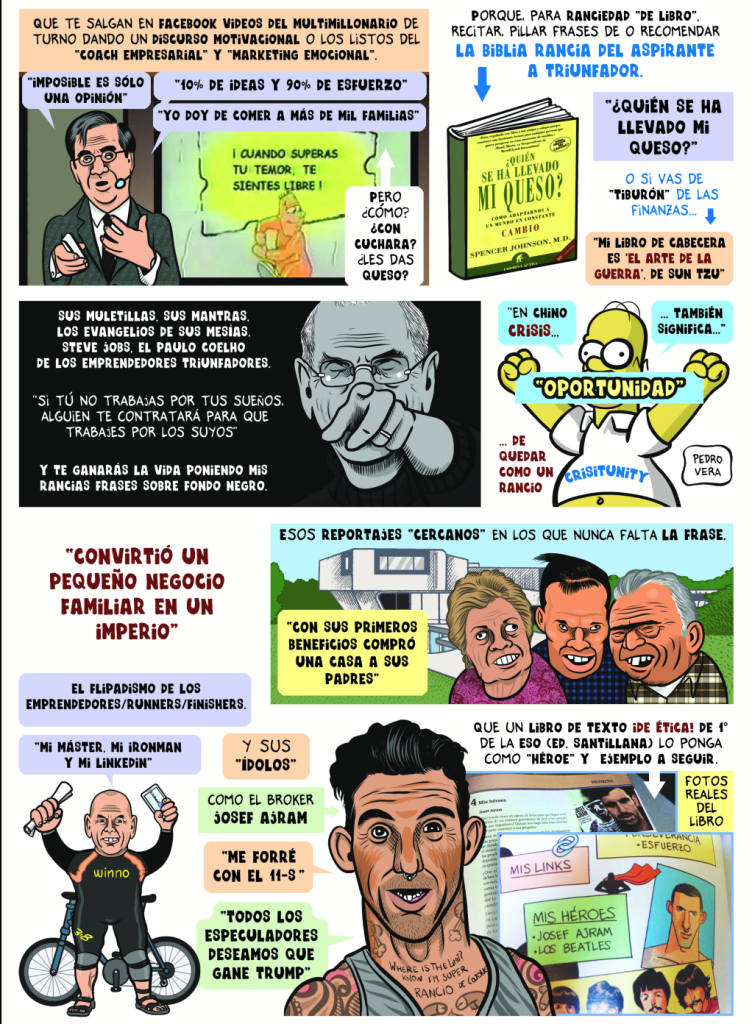 Son molt pocs els casos de persones que treballant molt han aconseguit obrir un negoci i ja no dic crear un “imperi”… i ens volen fer tragar que tots tenim les mateixes oportunitats, que “si vols pots”. A base de repetir constantment el “mantra” de l”entrepeuner “fet a si mateix”a través dels mitjans de comunicació, xarxes socials, anuncis, etc han aconseguit que moltes persones s’ho creguin.