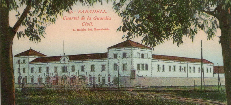 La Caserna de la Guàrdia Civil va ser obra de l’arquitecte modernista sabadellenc Juli Batllevell Arús, es va començar a construir l’any 1911 i va ser inaugurada el 1913 amb la finalitat d’acabar amb les revoltes i vagues obreres de la ciutat. Cal tenir en compte que el 1909 es va produir la “Setmana Tràgica” amb l’ocupació i saqueig de l’Ajuntament i la crema de diverses esglésies, i el 1910 s’havia creat la CNT. El cost de l’edifici va ser sufragat per l’empresariat local, els principals industrials de la ciutat i l’Ajuntament. El febrer de 1910 una comissió municipal va garantir una aportació de l’Ajuntament de 75.000 pessetes, que suposava la meitat del pressupost de la construcció. L’ altra meitat va ser finançat per la Caixa de Sabadell, el Banc de Sabadell i l’empresa Energia, així com pels principals membres de la burgesia local.